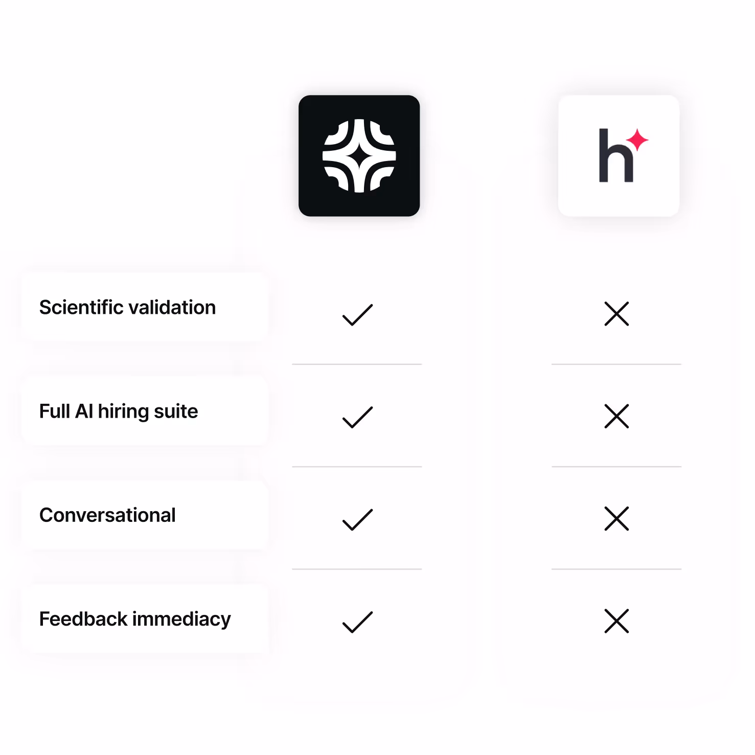 Science-backed, predictive skill assessments that convert interviews into actionable insights, not static video reviews with limited depth.