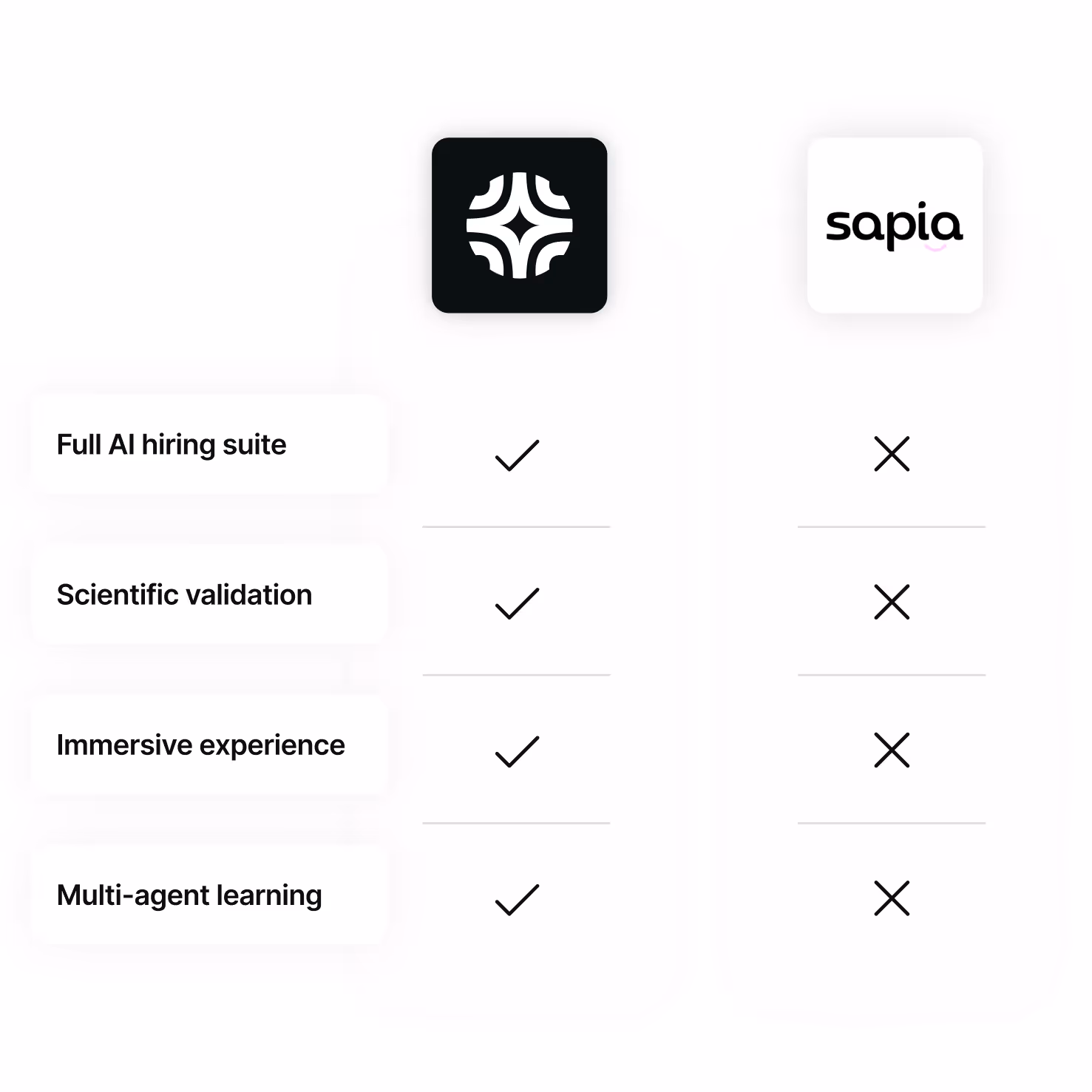 Where Sapia focuses primarily on personality and behavioral signals from text-based interviews, Maki adds multi-format, science-backed assessments and workflow automation across the full hiring funnel.