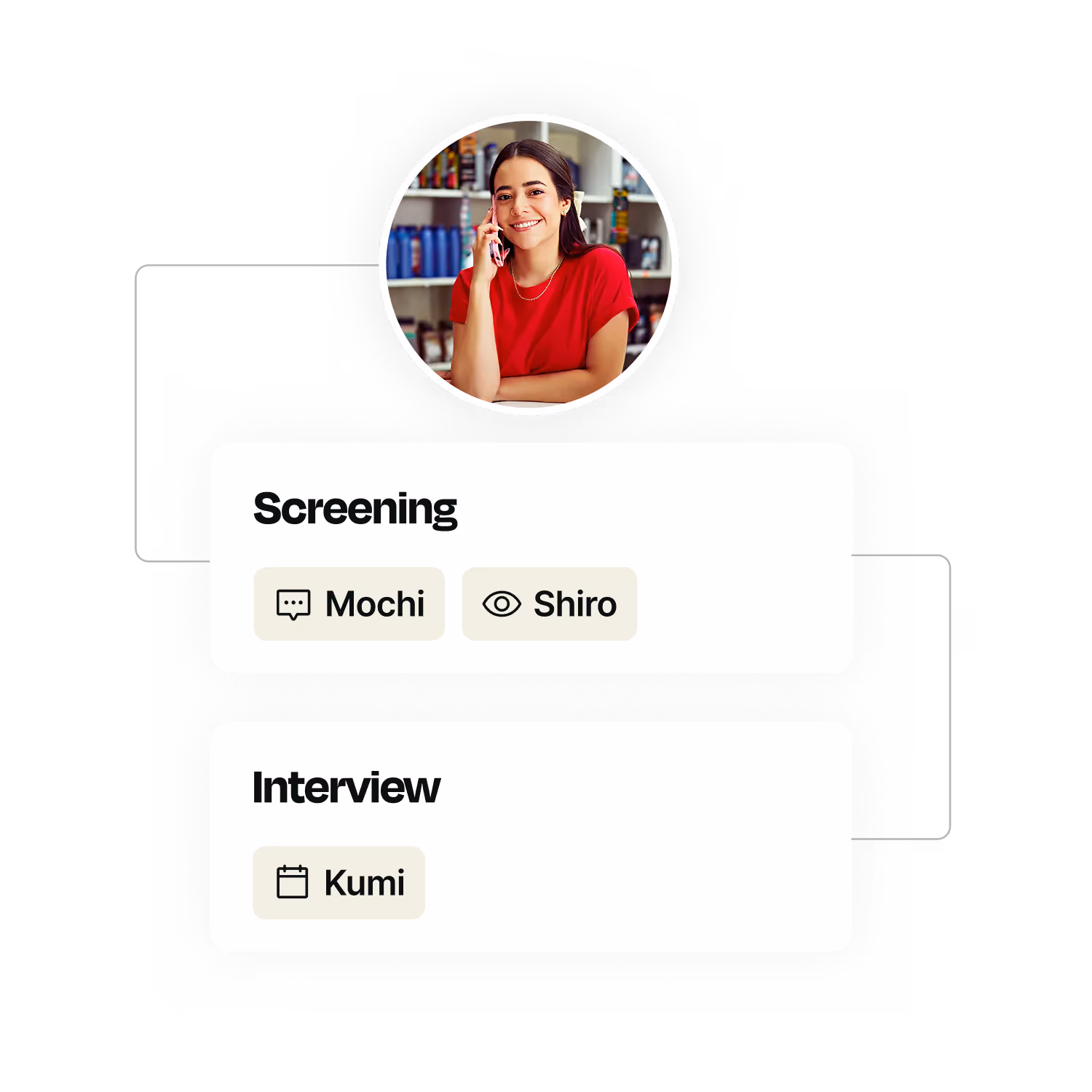 Mochi: Conversational phone or web screens that capture availability and motivation fast and answers candidate questions instantly.